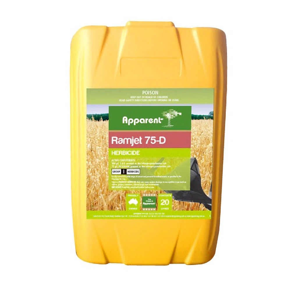 Ramjet 75-D Herbicide is registered as a spray treatment for control of a wide range of annual and perennial broadleaf weeds in winter and summer cereals, fallow, sugarcane (QLD only) and agricultural non-crop areas as well as the control of unwanted Eucalypt trees and Woody Weed infestations.